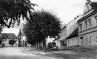 Vpravo čp. 4 s koloniálem U Teimerů a Laušmanovým obchodem s jízdními koly a radiopřijímači, za ním čp. 104 a v něm Šubrtovo železářství. V pozadí drogerie materialisty Krause v čp. 110 s benzínovým čerpadlem.