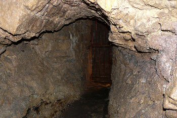 prostory ve skále tesaných sklepů, propojených s více než 26 metrů